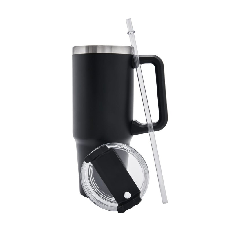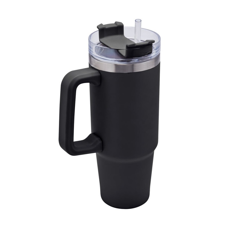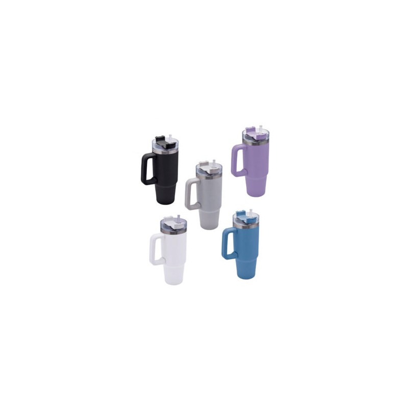 TERMO CON ASA Y POPOTE(Doble pared. Pared interna y externa de acero inoxidable. Sellado a vacío. Tapa de plástico con cierre de rosca y sobretapa giratoria de 3 posiciones con ranura para popote. Incluye popote y asa de plástico. Mantiene temperatura caliente 6 hrs y temperatura fría 8 hrs aproximadamente. Incluye caja individual.) TMPS 164