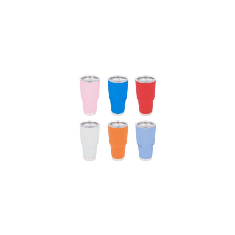 TERMO ARUBA(Doble pared. Cerrado al vacío. Pared interna y externa acero inoxidable. Terminado tipo rubber. Incluye tapa de plástico con válvula de seguridad. Mantiene temperatura caliente 6 hrs y temperatura fría 8 hrs aproximadamente. Incluye caja individual.) TMPS 148